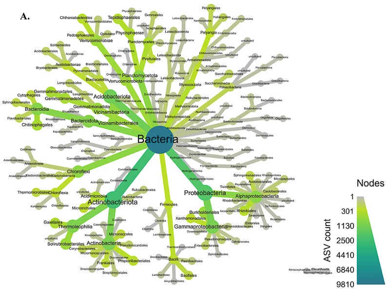 - Keystone microbial species acting as gateways to root nutrient uptake with extensive cluster consortia of Microbes and Fungi.