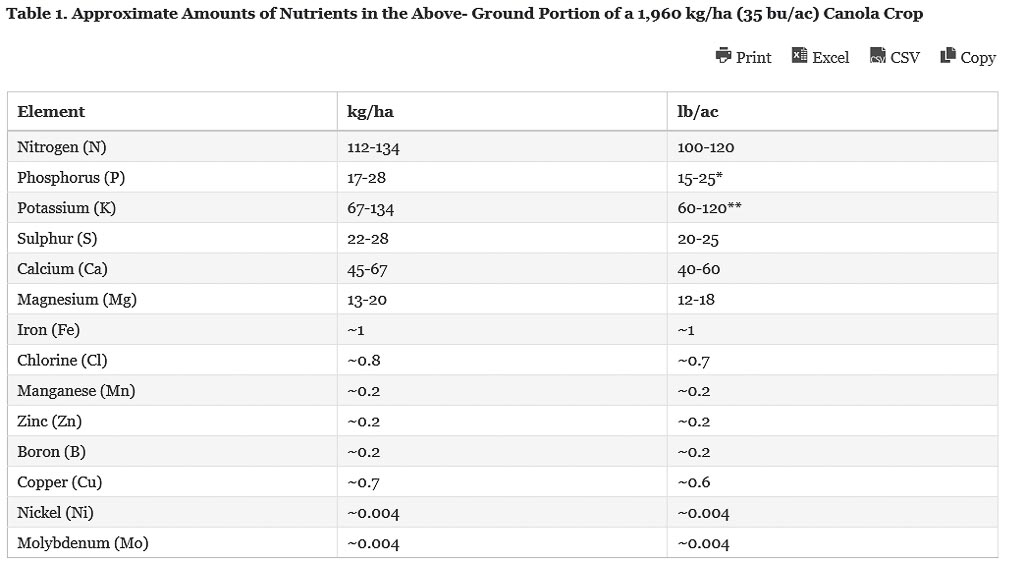 Amount of Nutrients required for Canola for 1960 kg per ha: